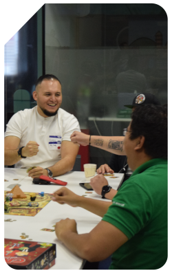 Creamos un ambiente de diversión con una amplia variedad de juegos de mesa a cargo de nuestros Game Masters: expertos facilitadores de juegos y animadores. Fomenta la diversión y el compañerismo por medio de espacios lúdicos de socialización saludable.